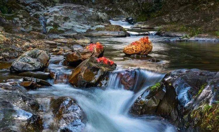 山间溪流,溪水清爽见底。